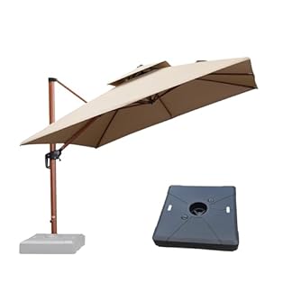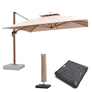 €759,00Produkt kaufenPURPLE LEAF Alu Holzoptik Sonnenschirm Groß mit Ständer Ampelschirm 300 x 300 cm Doppeldach Gartenschirm mit Kurbel 360° Drehbar XXL, Sonnenschutz UV50+, Beige