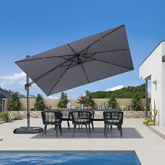 €399,00Produkt kaufenPURPLE LEAF Ampelschirm 300 x 300 cm Sonnenschirm mit LED Beleuchtung, Neigbar Kippbar Gartenschirm mit Kurbel, Aluminium Gestell, 360° Rotation, Beige