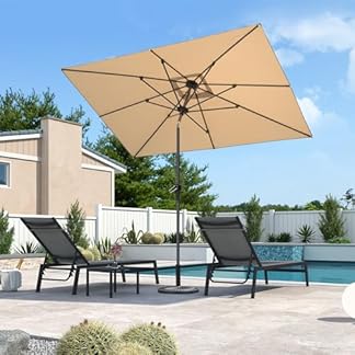 €419,00Produkt kaufenPURPLE LEAF Ampelschirm mit Solar-LED Sonnenschirm mit Kurbel 300 x 300 cm entlang des Mastes neigbar 360-Grad Drehbar mit Fußpedal und Kreuzsockel für Terrasse, Balkon Sonnenschutz, Beige