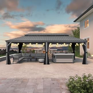 €3499,00Produkt kaufenPURPLE LEAF Hardtop Pavillon 3.65 x 7.32 m Wasserdicht Stabil Winterfest Gartenpavillon mit Stahldach Alu Pavillon mit Seitenteile, Grau