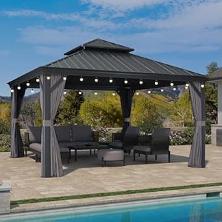 €669,00Produkt kaufenPURPLE LEAF Gartenpavillon 3.35 x 4.25 m Pavillon Wasserdicht Stabil Winterfest Alupavillon mit Stahldach Hardtop Pavillon mit Seitenteile, Grau