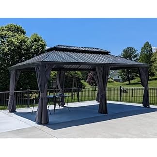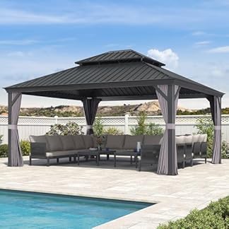 €3699,00Produkt kaufenPURPLE LEAF Pavillon 3.65 x 4.85 m Festem Dach, Basisch Gartenpavillon Wasserdicht Stabil Winterfest Alupavillon mit Stahldach Hardtop Pavillon mit Seitenwänden, Grau
