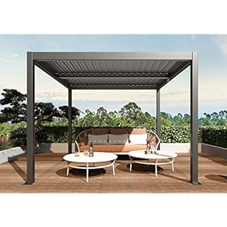 €4040,99Produkt kaufenPergola HWC-L46 mit Seitenwand, Gartenpavillon Lamellen-Pavillon Rollo, 11cm-Alu-Gestell, sturmfest 3x3m – anthrazit