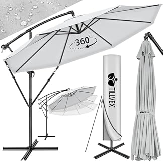 €104,79Produkt kaufentillvex Alu Sonnenschirm + Abdeckung Ø 300 cm mit Kurbel | Ampelschirm mit Ständer & Windschutz | Gartenschirm UV-Schutz Aluminium | Kurbelschirm Marktschirm wasserdicht 360° drehbar