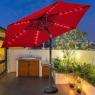 €274,21Produkt kaufenJJ Home 250 cm Garten-Sonnenschirm mit Solar-LED-Licht, Terrassenschirm-Überdachung für den Außenbereich mit Kurbel- und Kippmechanismus, UV-Schutz für Terrasse/Terrasse/Pool (Color : Burgundy)