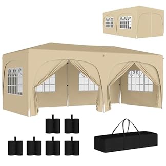 €209,90Produkt kaufenOutsunny Pavillon ca. 3x6m, wasserabweisend Stabil Winterfest Pop-up Faltpavillon, UV Schutz 50+, Faltbar Partyzelt Gartenzelt mit 6 Seitenteilen Tasche Gartenpavillon für Camping Garten, Sand