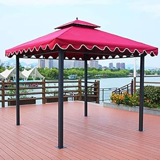 Outdoor-Vordach, mit Gaze, Doppelbelüftung, Deckenrahmen, Terrasse, Gartenpavillon, idyllischer Outdoor-Vorhang, Zelt, Eisenkunst, permanenter Pavillon, Sonnenschutz (3 x 3 m), Rot
