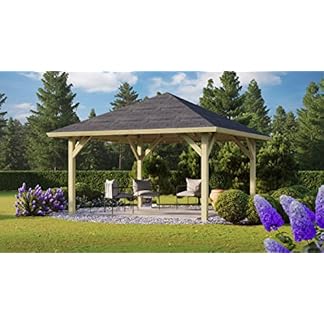 CHILLROI® Quadratischer Holzpavillon 359 x 359 cm | Gartenpavillon | Terrassenüberdachung | kesseldruckimprägniert