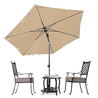 €4616,00Produkt kaufenHOMEDEMO Sonnenschirm Strandschirm mit LED-Lichtern, Ø 270 cm Gartenschirm Marktschirm, Terrassenschirm, Tischschirm mit 6 Rippen,Khaki rund Schutz 50+ Knickbar Neigbar Sonnenschutzschirm