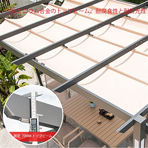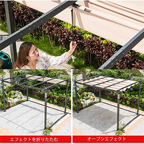 HOCHWERTIGES STOFFMATERIAL: Die Überdachung der Pergola besteht aus Polyestergewebe + PU, um eine zuverlässige Wasserdichtigkeit, UV-Beständigkeit und Lichtbeständigkeit zu gewährleisten. Genießen Sie jahrelange UV-Diffusion dank lichtechtem Polyester und einem pulverbeschichteten Stahlrahmen, um dies zu unterbinden Korrosion und Gelenksverschleiß