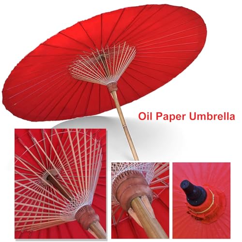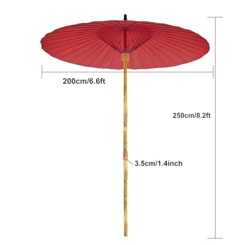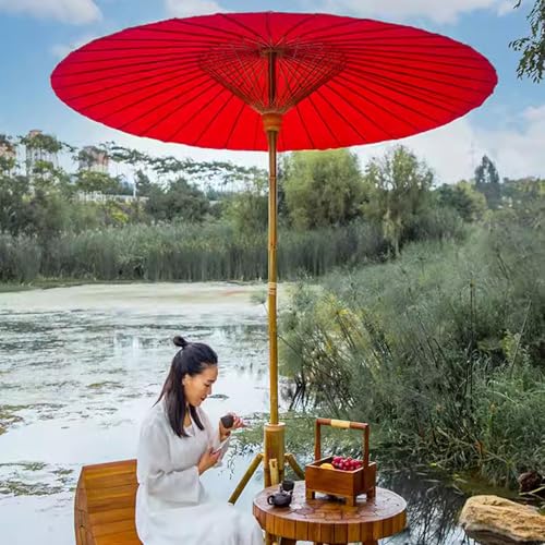 Chinesischer Sonnenschirm, orientalischer dekorativer Retro-Gartenschirm, kleiner Shanghai-Schirm, Ölpapierschirm. Die Streben bestehen leer Bambus, der seit mehr als 5 Jahren gepflanzt ist. Der Schirmmast hat einen Durchmesser von mehr als 3,5 cm und ist anpassbar. Er kann als Dekoration für Terrassen, Cafés, Restaurants, Strände, Villen oder Privatunterkünfte im Fotostudio verwendet werden. Schirmhöhe: 250 cm. Durchmesser des Schirmfußes: 200 cm. Farbe: Rot. Packliste: Öl (ohne Fuß). Hinweis: Um die Lebensdauer zu verlängern, öffnen Sie den Schirm bitte nicht über Nacht bei Regen oder starkem Wind. Die Größe wird manuell gemessen, es kann zu Abweichungen von 1–3 cm kommen.