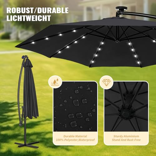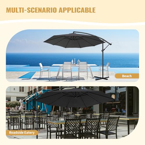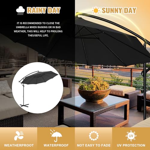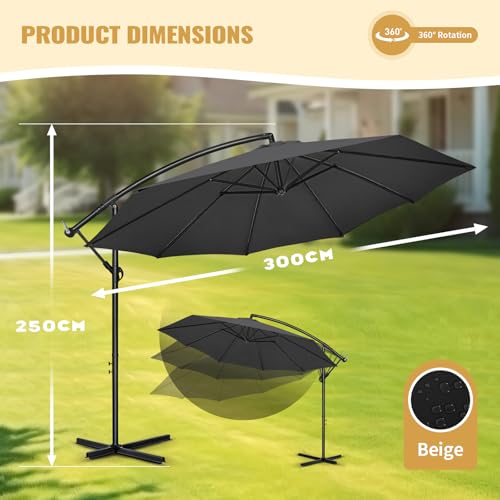 【Große Schattenabdeckung】 Dieser 3/3,5 m Ampelschirm bietet eine großzügige Schattenfläche von 7/10㎡, sodass Sie bei Outdoor-Treffen, Grillabenden oder entspannter Zeit am Pool angenehm kühl bleiben. Der hochwertige, lösungsgarneingefärbte Stoff bietet 99,9 % Sonnenschutz, schützt vor schädlicher UV-Strahlung und ist zudem wasserabweisend, sodass er jedem Wetter standhält.