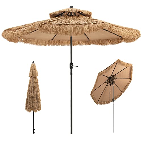 Der Gartenschirm verfügt über 8 Stahlrippen, einen 4,8 cm starken Mast und ein verstärktes Rippen-Design, das Windgeschwindigkeiten von bis zu 30 MPH standhält.