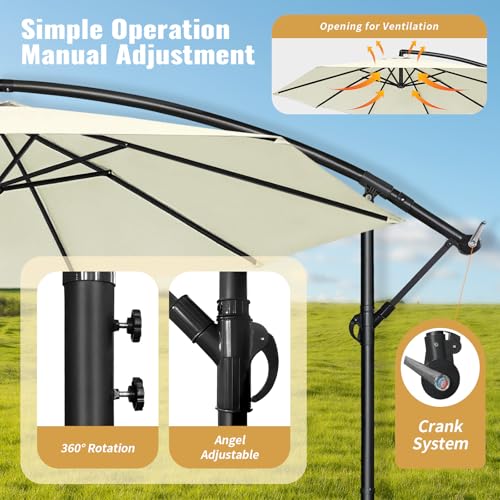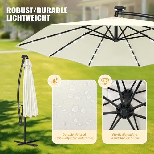 【Große Schattenabdeckung】 Dieser 3/3,5 m Ampelschirm bietet eine großzügige Schattenfläche von 7/10㎡, sodass Sie bei Outdoor-Treffen, Grillabenden oder entspannter Zeit am Pool angenehm kühl bleiben. Der hochwertige, lösungsgarneingefärbte Stoff bietet 99,9 % Sonnenschutz, schützt vor schädlicher UV-Strahlung und ist zudem wasserabweisend, sodass er jedem Wetter standhält.