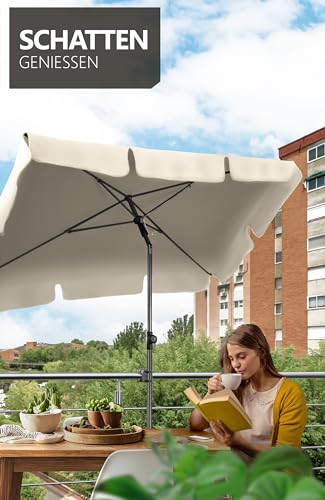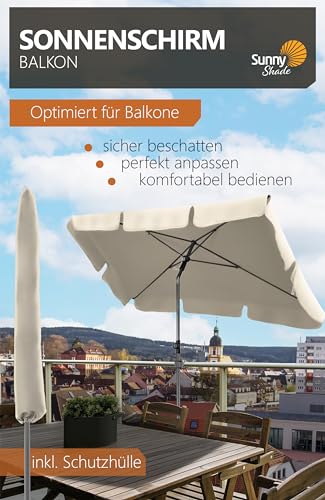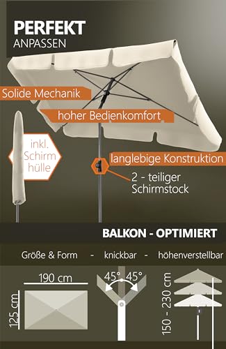 4happy Rechteckiges Balkonschirm Set per Schirmschutzhülle – UV50+ Schirm 200 x 125 cm – SunnyShade in Beige, höhenverstellbar, per Knickfunktion Kultivieren Sie schattige Wohlfühloasen: Genießen Sie heiße Sommertage kühl per dem Balkonschirm SunnyShade. Perfekter Balkon-Sonnenschutz, vulgo ideal wie Gartenschirm.