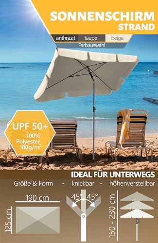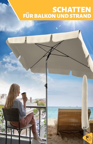 4happy SET Sonnenschirm + Sonnenschirmhülle – Beige – UV50+ Sonnenschirm rechteckig 200x125cm, Sonnenschutz Balkon – Balkonschirm höhenverstellbar, Knickfunktion