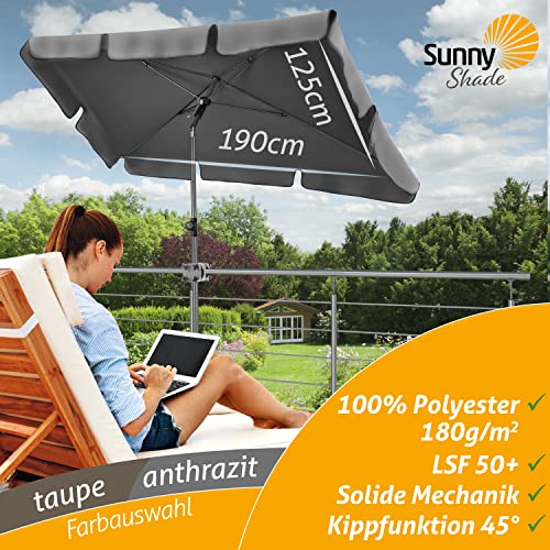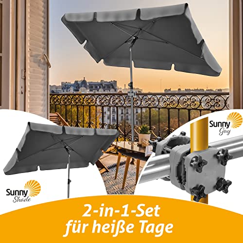 4smile Sonnenschirm Balkon SunnyShade – Sonnenschutz Balkon 3-in-1 SET, Anthrazit – UPF 50+ Sonnenschirm rechteckig 200 x 125 cm + Sonnenschirmhalter Balkongeländer + Sonnenschirmhülle