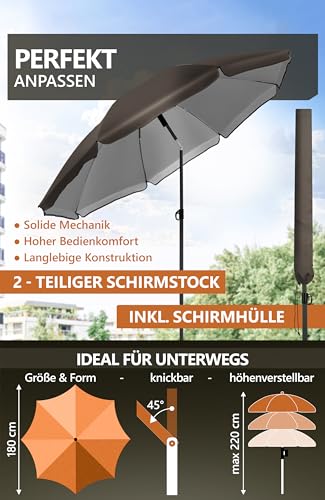 𝗙𝘂𝗻𝗸𝘁𝗶𝗼𝗻𝗮𝗹 𝘂𝗻𝗱 𝗯𝗮𝗹𝗸𝗼𝗻-𝗼𝗽𝘁𝗶𝗺𝗶𝗲𝗿𝘁 – Der Sonnenschirm klein (190 cm) Mithilfe Knickfunktion ist höhenverstellbar außerdem denn gemacht anstelle Balkone; inkl. Sonnenschirmhülle.