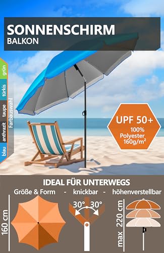 𝗣𝗲𝗿𝗳𝗲𝗸𝘁 𝗮𝘂𝗳 𝗱𝗲𝗺 𝗕𝗮𝗹𝗸𝗼𝗻 – Gute Balkonsonnenschirme sind höhenverstellbar mit Knickfunktion; balkontaugliche Parasol Größe 180 cm.