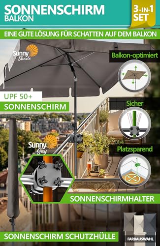 BALKON WIRD ZUR SCHATTIGEN WOHLFÜHLOASE – Der rechteckige UPF 50+ Sonnenschirm Balkon SunnyShade ist perfekter Schattenspender und Balkon Sonnenschutz; inkl. Sonnenschirm Halterung Balkon und Sonnenschirmhülle