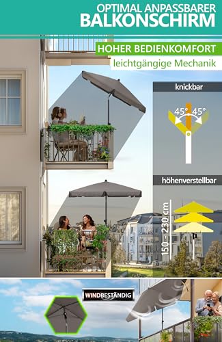 Dank der robusten Erledigung ist der Sonnenschirm leistungsfähig windfest und hält selbst stärkeren Windböen problemlos stand. Der Sonnenschirm windfest Balkon lässt sich zudem ganz einfach in der Höhe verstellen und verfügt über eine praktische Knickfunktion, wodurch Sie ihn jederzeit optimal auf die wechselnde Sonneneinstrahlung aufziehen können. Als einer der besten Balkonsonnenschirme knickbar auf dem Marktgebiet bietet das Set eine elegante und zugleich robuste Komplettlösung für den perfekten Sonnenschutz Balkon oder den Sonnenschutz Terrasse.