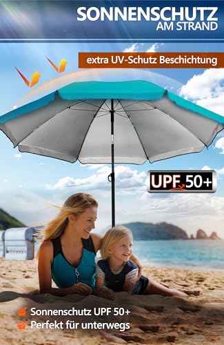 BEDENKENLOS VERWENDEN – Zuverlässiger Strandschirm mit hohem Sonnenschutz UPF 50+ sorgt für entspannte Tage am Strand, See oder Campingplatz; ideal für Freizeit, Urlaub und Reisen