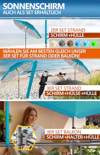 ENTSPANNT GENIESSEN – Sonnenschirm Strand windfest abgehärtet mit UPF 50+ ist als kompakter Strandschirm mit UV Abschirmung, Balkon Schirm oder Gartenschirm einsetzbar; inkl. Schirmhülle; passt in jeden Schirmständer