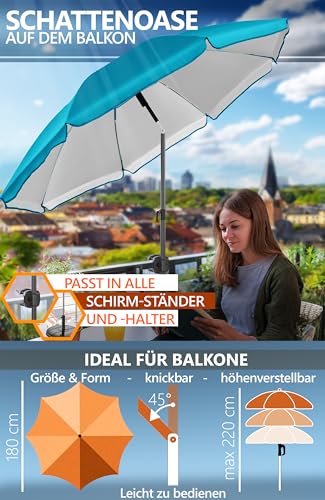 FLEXIBEL EINSTELLEN – Balkonschirm Ø 180 cm mit praktischer Höhenverstellung und Knickfunktion ermöglicht flexible Modifikation an wechselnden Sonnenstand und jede Umgebungssituation