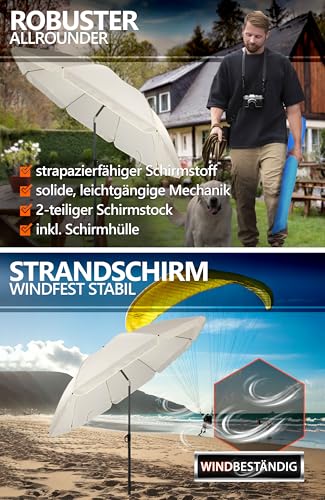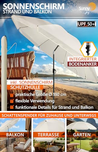 ZUVERLÄSSIGER SCHATTENSPENDER – SunnyJoy Sonnenschirm Strand windfest zäh mit UPF 50+; anpassbar einsetzbar qua Strandschirm mit UV Abschirmung, Balkon Schirm oder Gartenschirm, inkl. Sonnenschirm Schutzhülle; passt in jeden Schirmständer