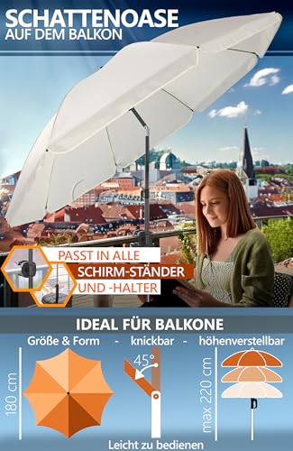FLEXIBLE EINSTELLUNG – Höhenverstellbare Balkonschirme Ø 180 cm mit praktischer Knickfunktion; echtes Anpassungstalent schafft angenehme Schattenplätze und zuverlässigen Sonnenschutz bei allen Outdoor-Aktivitäten