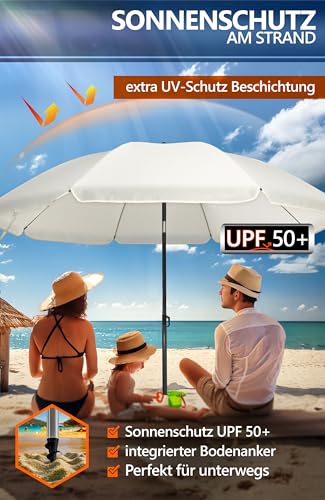 SICHERER SONNENSCHUTZ – Der Strandschirm bietet zuverlässigen UV-Abschirmung (UPF 50+); ideal für die Freizeit am Strand, See und beim Camping oder qua Reise Sonnenschirm für Koffer