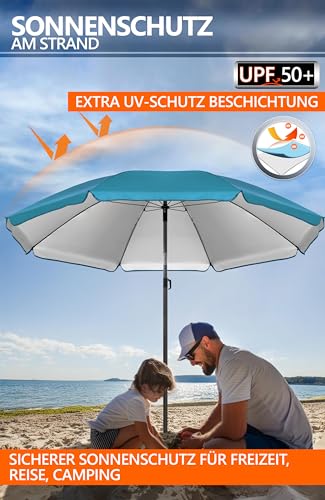 4smile Sonnenschirm Strand SunnyJoy, Türkis – UPF 50+ Strandschirm Ø 180 cm, sicherer Sonnenschutz Strand, Strandschirm windfest stabil – Sonnenschirm mit Schutzhülle