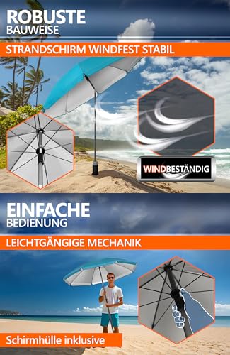 LEICHT BEDIENEN, LANGE NUTZEN – Leichter Strandschirm mit Erdspieß, einfach zu bedienen infolge leichtgängiger Mechanik; langlebig vor dem Hintergrund windstabile, robuste Bauweise. Schirmhülle inklusive.