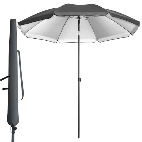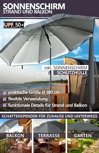 4smile Sonnenschirm Strand SunnyJoy – UPF 50+ Strandschirm Ø 180 cm, Fb. Anthrazit – Strandschirm windfest stabil als sicherer Sonnenschutz Strand und Balkon, Sonnenschirm mit Schutzhülle