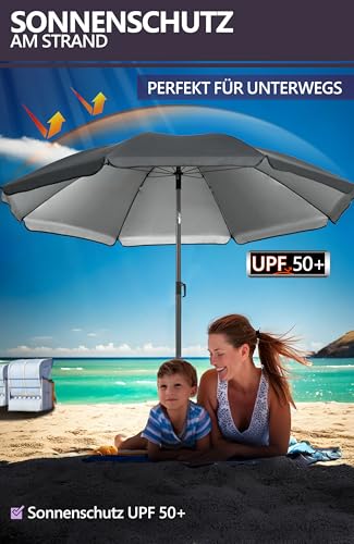 SICHERER SONNENSCHUTZ FÜR UNTERWEGS UND ZUHAUSE – SunnyJoy, Sonnenschirm Strand windfest abgehärtet mit UV-Abschirmung 50+ ist in Anbetracht seine kompakte Bauweise und funktionale Details ideal qua Sonnenschirm zum Wegwischen; inkl. Sonnenschirm Schutzhülle