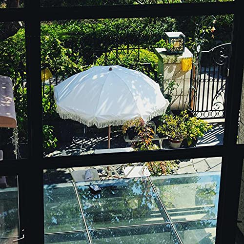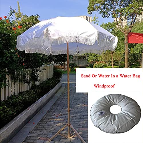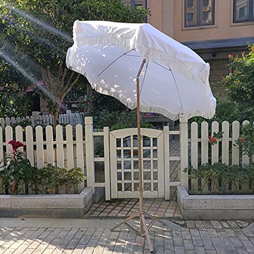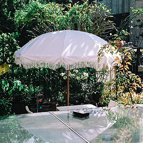 Strandschirm: Quastenschirm im amerikanischen Landhausstil, hochwertig und schön. Weißer dicker Polyesterstoff + Quastenspitze, machen Sie Ihren Innenhof romantischer.