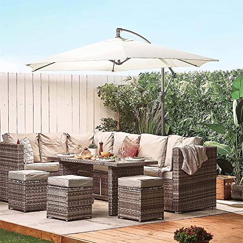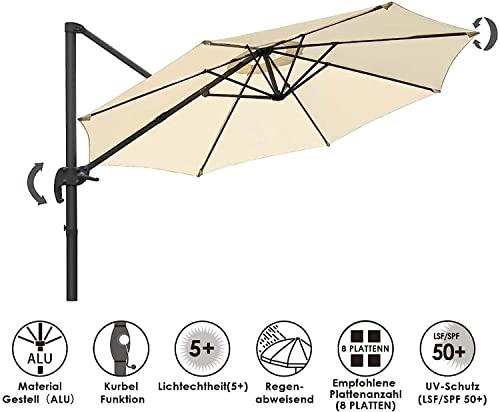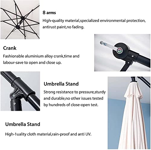 ? Der Offset-Sonnenschirm ist aus hochwertigem Metallmaterial und strapazierfähigem Stoff gefertigt und bietet hervorragende Robustheit, Sonnenbeständigkeit und langlebige Leistung.