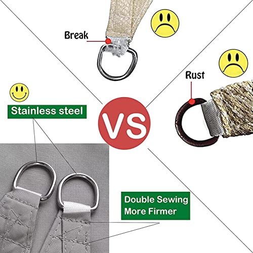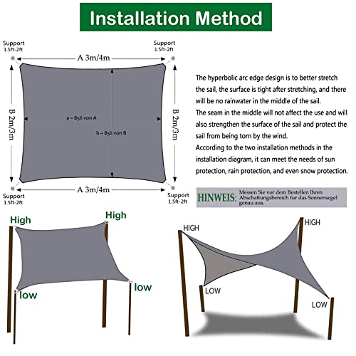 ☂Einfach zu installieren und zu untätig sein: Sie können es fast überall verwenden; Jede Ecke verfügt über einen langlebigen Edelstahl-D-Ring und kostenlose Schnüre für eine schnelle und einfache Installation Ihres Sonnensegels. Wir empfehlen einen Installationswinkel von 20-40 Abstufung, um die optimale Abenteuer zu erhöhen und Regen und Schnee abzuleiten.