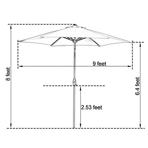 – Schirmdurchmesser: 2,7 m – Schatten Sie Ihren 106,7 cm bis 137,2 cm runden, quadratischen oder rechteckigen Tisch mit 4 bis 6 Stühlen.