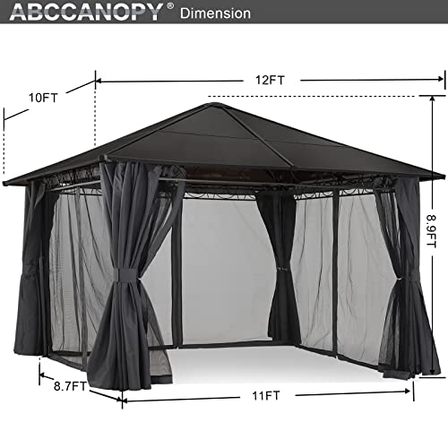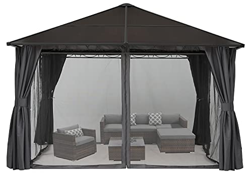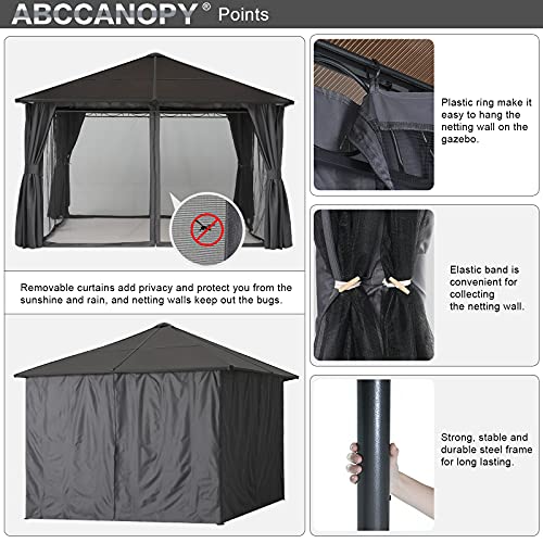 ABCCANOPY 3×3.6m Hardtop Pavillon mit Vorhängen und Netz,Dunkelgrau