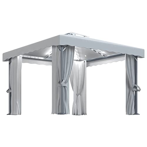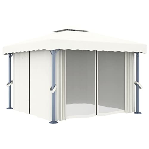 AGGEY Haus, Pavillon mit Vorhang und LED-Lichterkette, 3 x 3 m, cremeweiß, Garten, Rasen