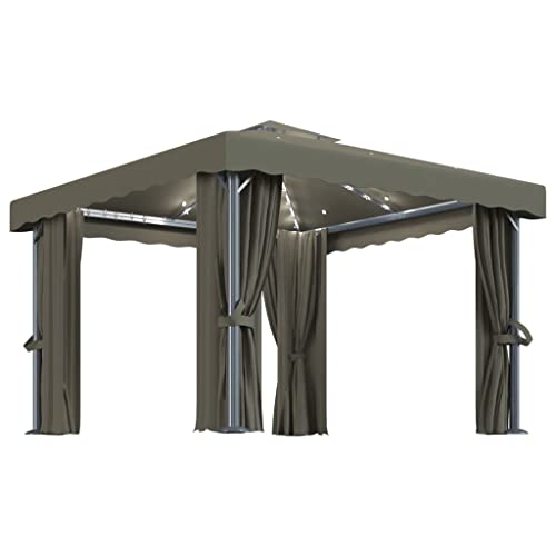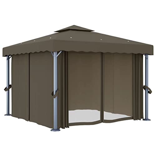 Haus, Pavillon mit Vorhang und LED-Lichterkette, 3 x 3 m, Taupe, Garten, Rasen. Dieser stilvolle Pavillon wird Ihren Garten sicherlich zu einem eleganten und funktionalen Blickfang machen. Es ist entworfen, um einen kühlen Ort für Partys im Freien, Familienpicknicks, Grillabende im Garten und Auswahlmöglichkeit gesellschaftliche Veranstaltungen zu bieten. Er ist mit einer Aluminiumstange und einem pulverbeschichteten Stahlrohr, das für hervorragende Alterungsbeständigkeit und Alterungsbeständigkeit sorgt. Der Baldachin und die Seitenwände bestehen leer hochwertigem Polyestergewebe mit PA-Beschichtung, um Sie vor schädlichen Strahlen und mildem Regen zu schützen. Ein alles klar! gestaltetes 2-stöckiges Dach sorgt für abundant Luftstrom darunter. Darüber hinaus sind die Vorhänge und die Netzstoff-Vorhänge für vollen Abschirmung enthalten, so dass Sie weitere Privatsphäre haben, währenddessen lästige Mücken und Auswahlmöglichkeit Insekten ferngehalten werden. Haken und Schlaufenverschlüsse sind zur einfachen Befestigung im Lieferumfang enthalten. Darüber hinaus schafft die Lichterkette eine gemütliche Atmosphäre in Ihrem Garten, wenn die Sonne untergeht. Die Lichter bringen keine Verschmutzung in die Umwelt, da sie tagsüber durch Sonnenenergie aufgeladen wird. Hinweis: Bitte lassen Sie es nicht bei widrigen Wetterbedingungen.