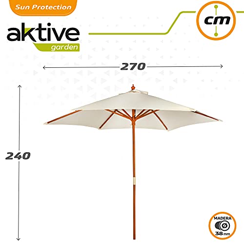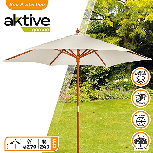 Der Sonnenschirm besteht aufgebraucht Polyester per 150 g/m², Gestell aufgebraucht Holz weiterhin Stange per 38 mm Durchmesser