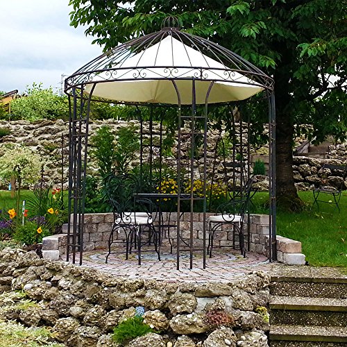 Wichtig ist, dass der Pavillon auf einen ebenen Untergrund gestellt wird. Er sollte nicht einfach ins Gras gesteckt werden für auf Kies, Natur- oder Pflastersteinen stehen.