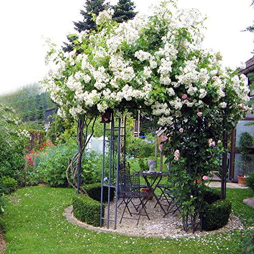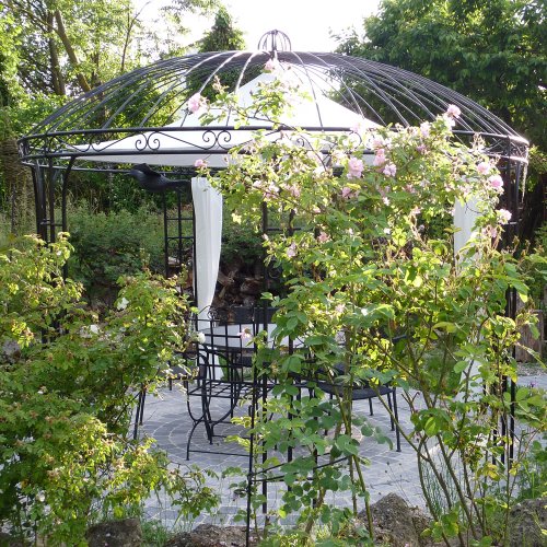 Die aufwändig von Hand geschmiedeten Eisenteile bieten Halt statt Kletterpflanzen qua Efeu, Weinlaub oder Rosen.