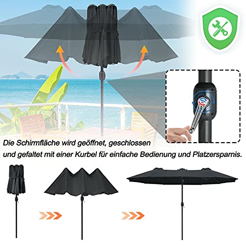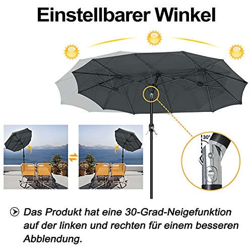 Doppel-Sonnenschirm – Der Sonnenschirm kann auf zwei Seiten gekippt werden.Perfekt für Ihren Garten, die Terrasse , Balkon oder am Strand. Dank seines großen Bezugs spendet er mehr Schatten als herkömmliche Sonnenschirme.