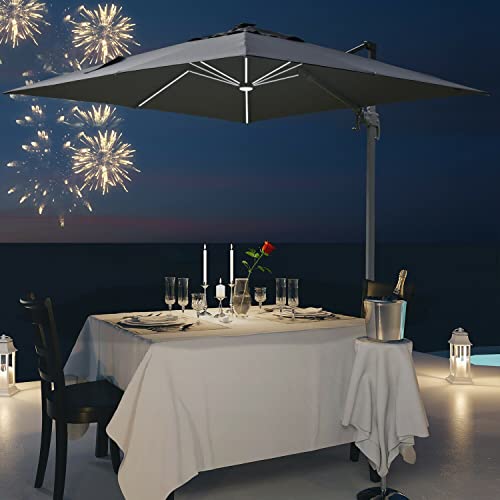 ALIDAM Terrassenschirm Sonnenschirm 3x3m Ampelschirm Schirm mit Solar-LED-Lichtern neigbar, Leichtgewichtige Aluminiumstruktur für einfachen Transport Sonnenschirm