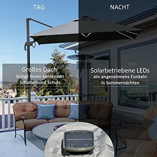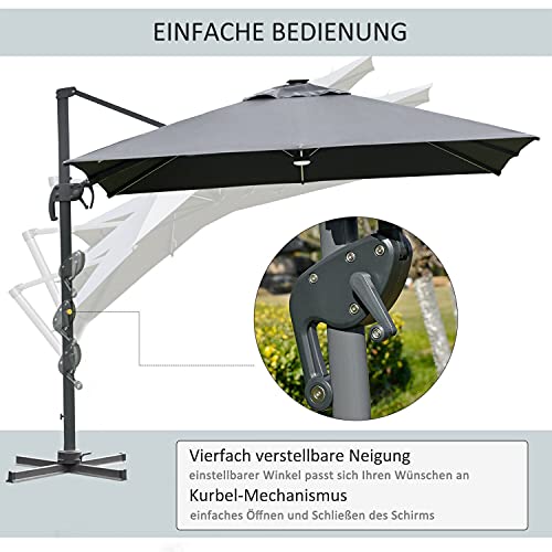 4-FACH SCHWENKBAR &HANDKURBEL: Mit dem Kurbelmechanismus können Sie den Schirm schnell und einfach anbrechen und verallgemeinern. Das in vier Positionen neigbare Schirmdach mit seinem verstellbaren Winkel und der kippbaren Schirmfläche passt sich nicht mehr da Ihren Vorlieben an und Sie können den ganzen Tag über geschützt entspannen