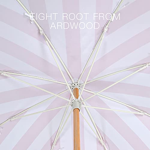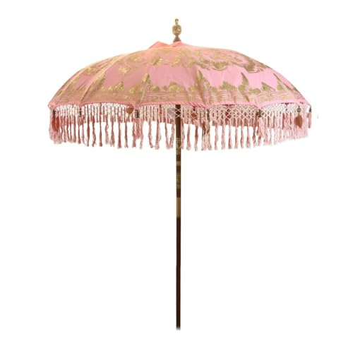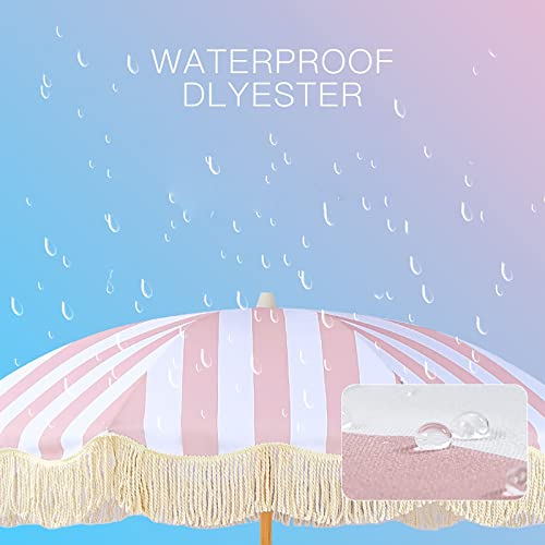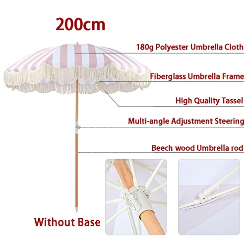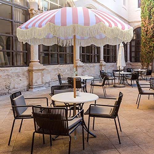 ALIXCE Rosa-Weiß Gestreifter Sonnenschirm 2M Retro Luxus Strand Schirm Mit Fransen, Polyester Schirmoberfläche, Verschleißfester Sonnenschutz, Romantische Küsten Innenhof Pool Beschattung