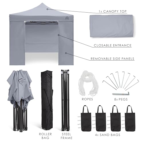 All Seasons Gazebos 3x3m vollständig wasserdichtes Faltpavillon mit 4 Seitenteilen – Metallisch Grau